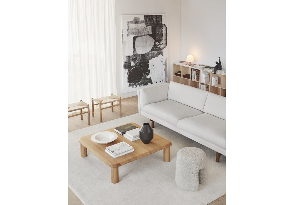 Wegner J16 diseñada por Hans J. Wegner para Fredericia es una mecedora realizada en madera maciza de nogal o roble. Asiento tejido en cuerda de papel en acabado natural o negro.