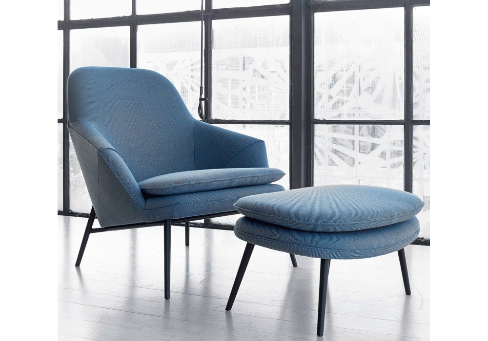 Hug diseñado por 365 North para wendelbo es un reposapiés con patas en acero con recubrimiento en polvo negro y acolchado asiento en espuma de alta resistencia revestimiento en piel o tejido.