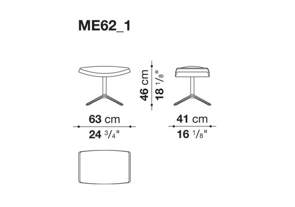 Metropolitan diseñado por Jeffrey Bernett para B&B Italia es un reposapiés con base en aluminio cepillado brillante o barnizado níquel bronceado. Revestimiento disponible en tela o piel.