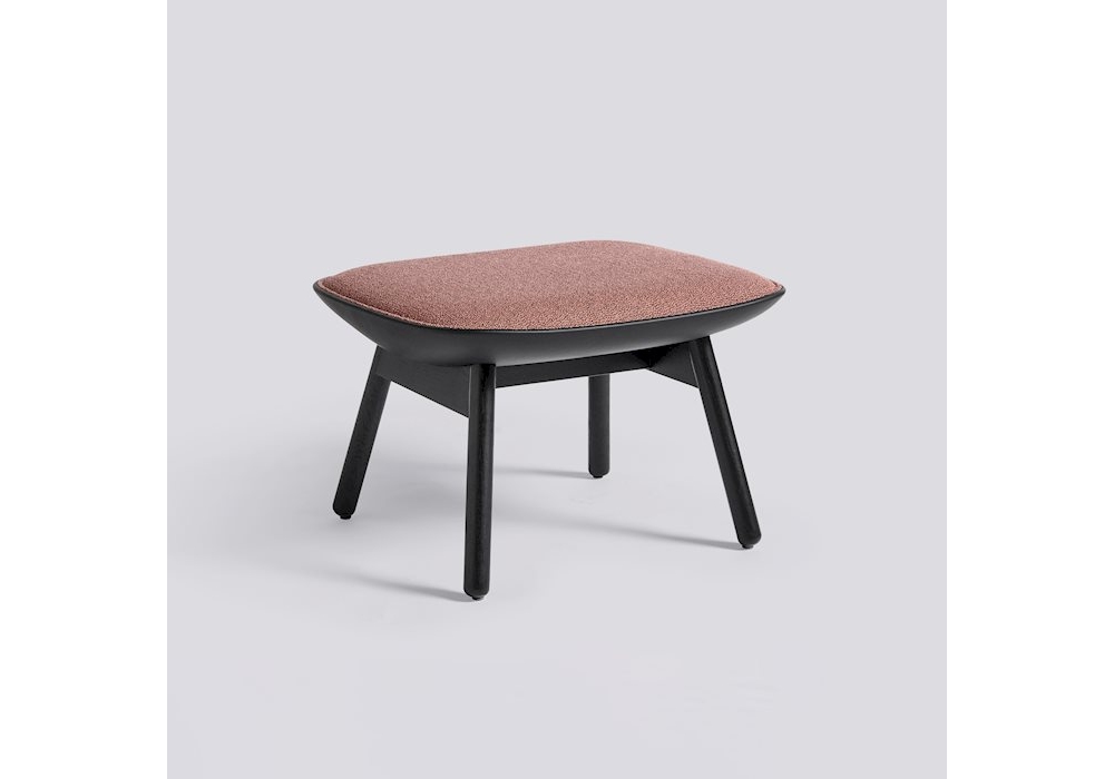 Uchiwa Ottoman diseñado por Doshi Levien para Hay es un reposapiés realizado con carcasa en polipropileno reforzado con espuma de poliuretano moldeada, base en roble macizo lacado al agua y tapizado interno y externo en tejido o piel. Disponible en diferentes tapizados.