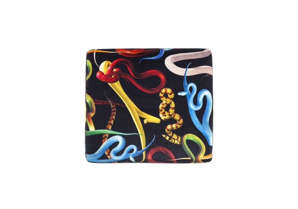 Pouf Serpenti puf conçu par Toiletpaper Magazine pour Seletti es un puf con base de cuatro pies en tubular de metal con detallados detalles de color. El cuerpo está cubierto con rembourré de poliuretano y recuperado de tejido de poliéster.