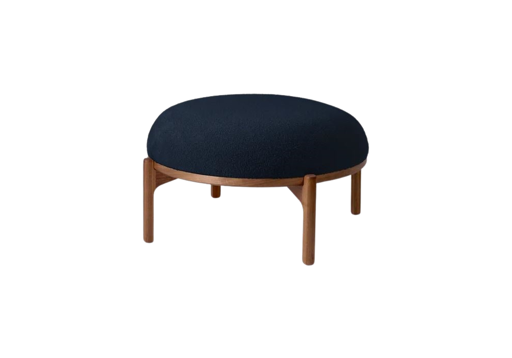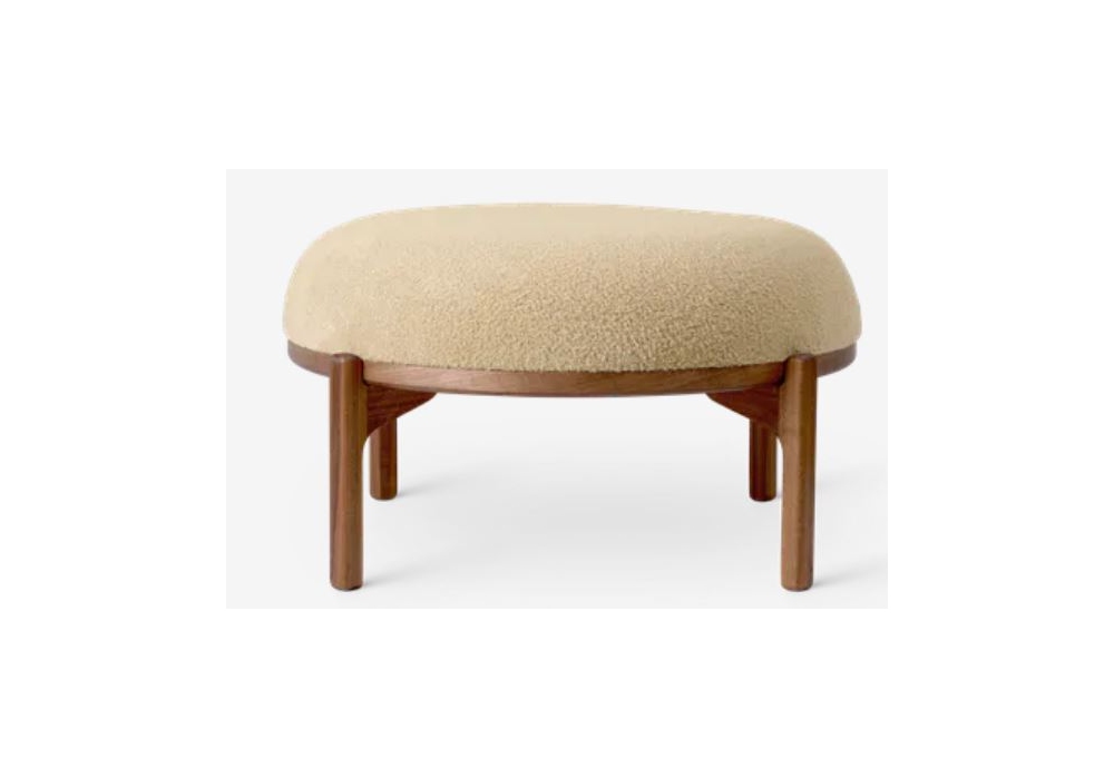 RF1903F Sideways diseñado por Rikke Frost para Carl Hansen & Søn es un reposapiés con estructura en roble macizo o nogal y tapizado en tela en diferentes acabados.