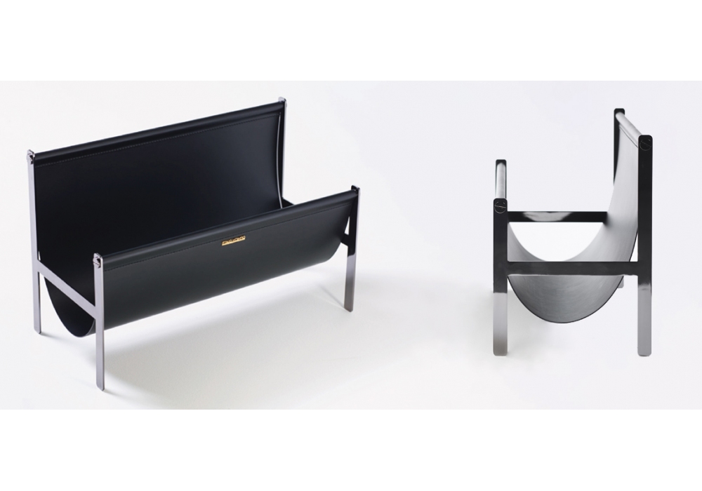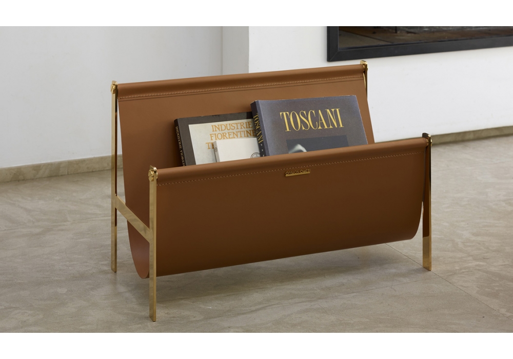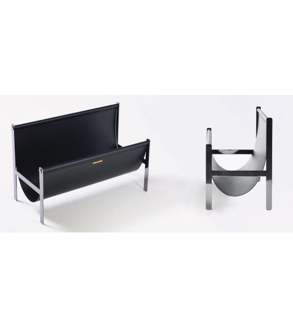 Portariviste diseñado por Lapo Ciatti para Opinion Ciatti es un revistero de cuero regenerado con estructura de acero.