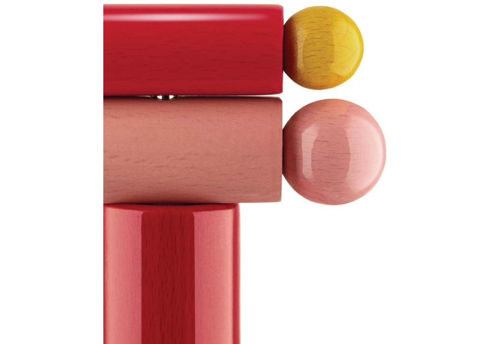 ES17 diseñado por Alessandro Mendini para Alessi es un sacacorchos en madera de haya. Disponible en 3 combinaciones de colores.