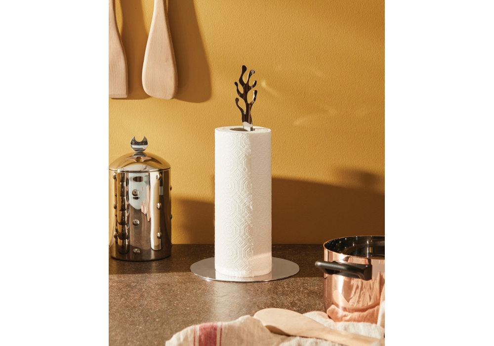 Mediterraneo diseñado por LPWK & Emma Silvestris para Alessi es un portarrollos de cocina realizado en acero inox.