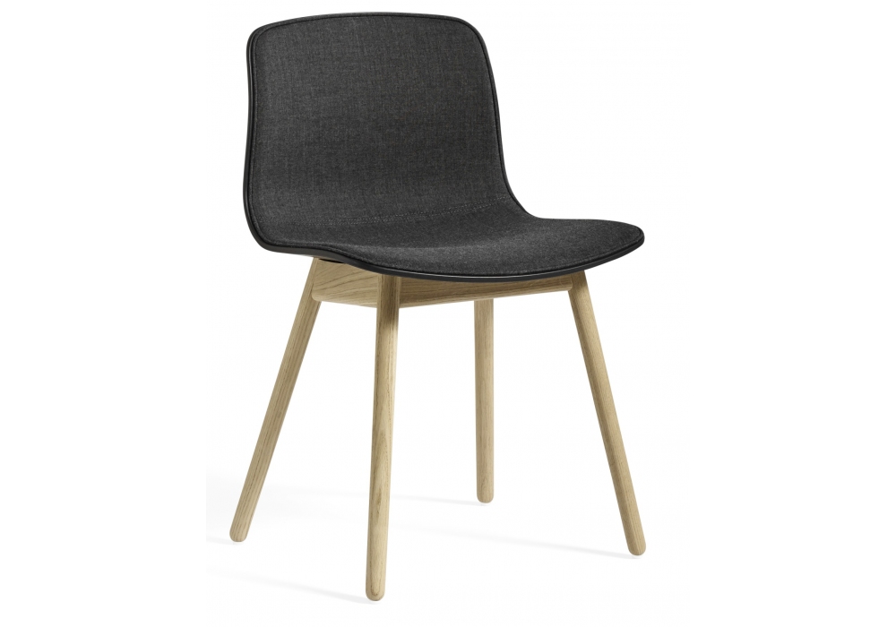 About a Chair AAC 12 diseñada por Hee Wellign & Hay para Hay es una silla con revestimiento frontal con base de 4 patas en roble macizo o nogal y tapizada en tejido o piel. Disponible en diferentes tapizados.