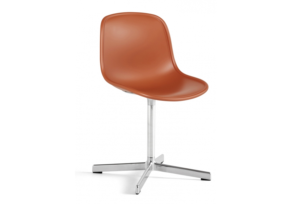 Neu 10 diseñada y producida por Hay es una silla con carcasa de polipropileno moldeado por inyección en color liso con canto perimetral y base giratoria de 4 radios en fundición de aluminio pulido. Disponible en diferentes tapizados.