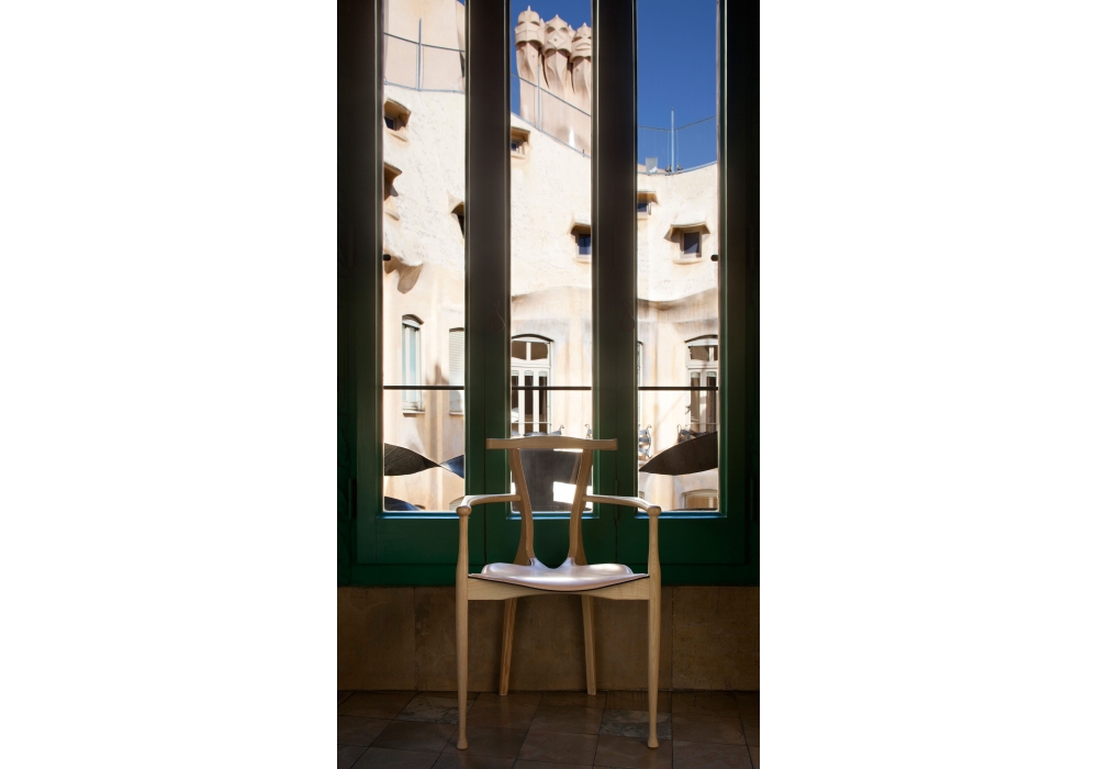 Gaulino, diseñada por Oscar Tusquets Blanca para BD Barcelona es una silla en madera contrachapada revestida en piel, disponible en diferentes acabados. La silla es apilable.