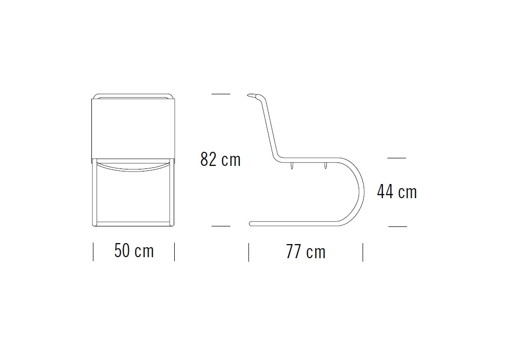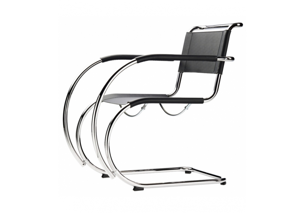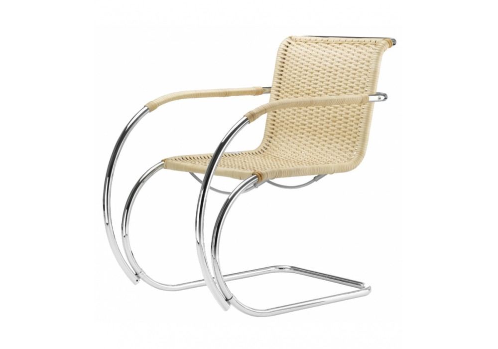 S 533 diseñada por Ludwig Mies van der Rohe para Thonet es una silla con estructura en tubo de acero cromado. Asiento y respaldo en mimbre, piel o tejido de malla sintética. Disponible con o sin reposabrazos.