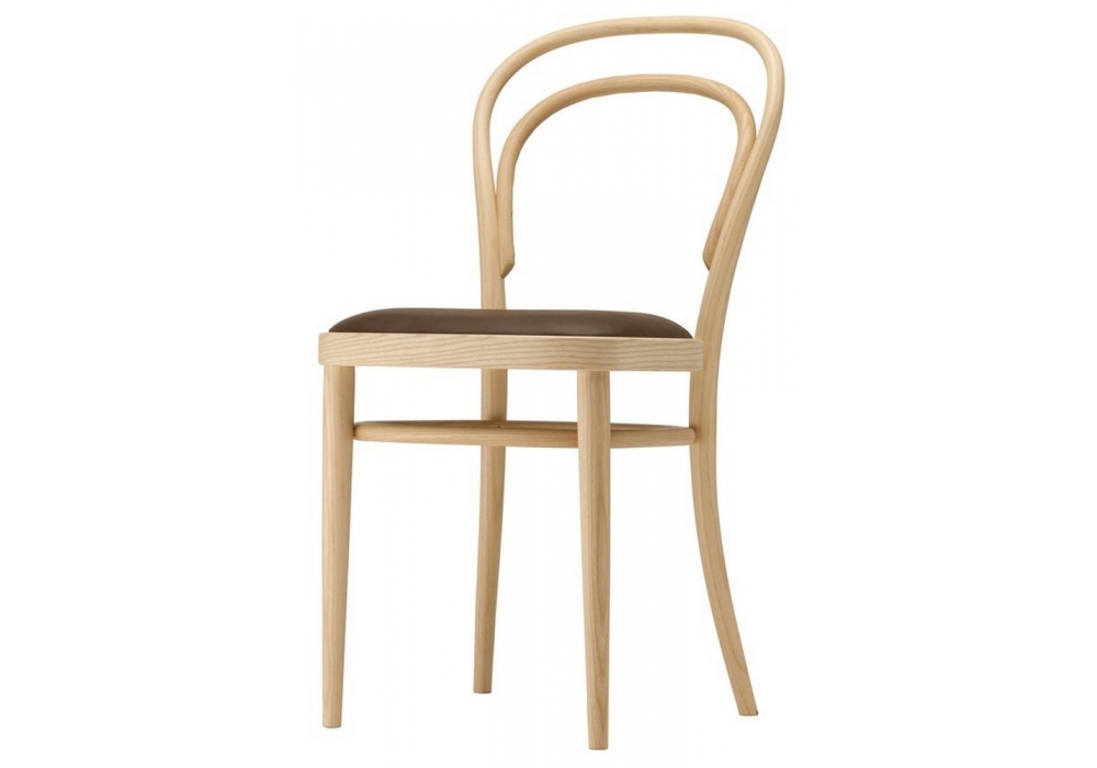 214 P diseñada por Michael Thonet para Thonet es una silla en madera curvada y pies de plástico. Asiento tapizado con tapicería de tela, cuero o cuero. Estructura en haya, disponible en diferentes acabados.