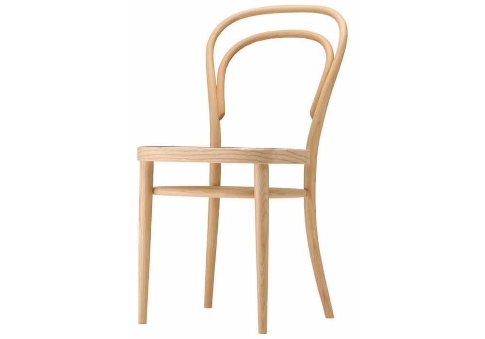 214 M diseñada por Michael Thonet para Thonet es una silla en madera curvada y pies de plástico. Asiento en madera contrachapada perfilada. Estructura en haya, disponible en diferentes acabados o en la variante de fresno tratado con aceite.