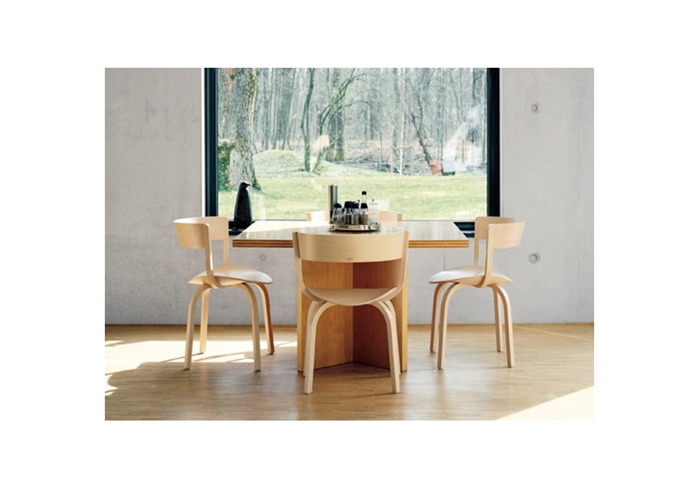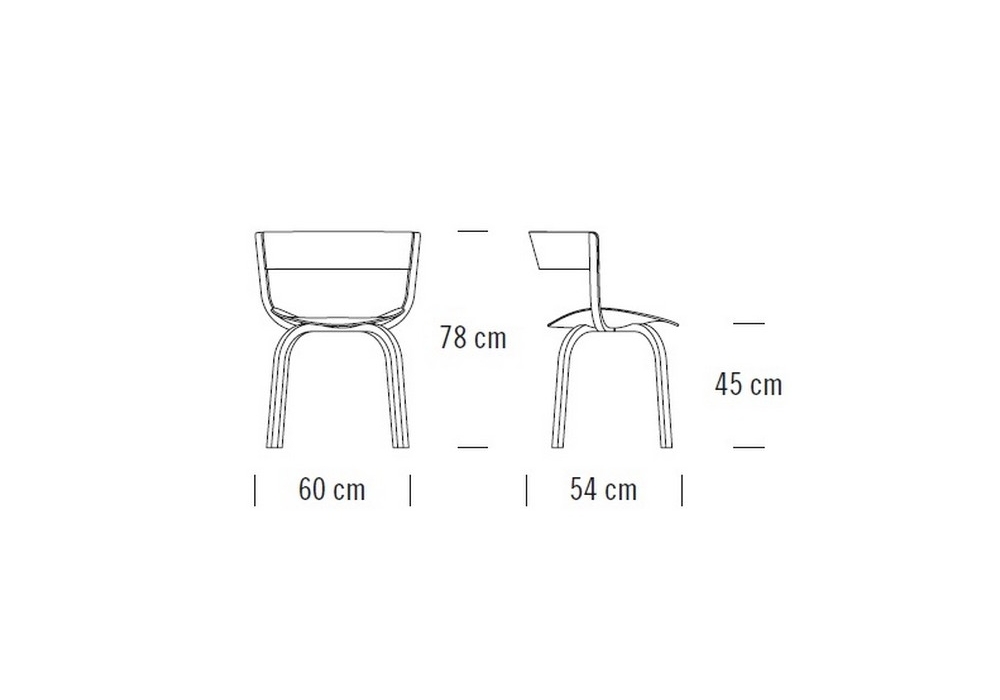 404 F diseñada por Stefan Diez para Thonet es una silla de madera con reposabrazos. Asiento y respaldo en contrachapado de roble perfilado. Estructura de roble disponible en diferentes acabados.