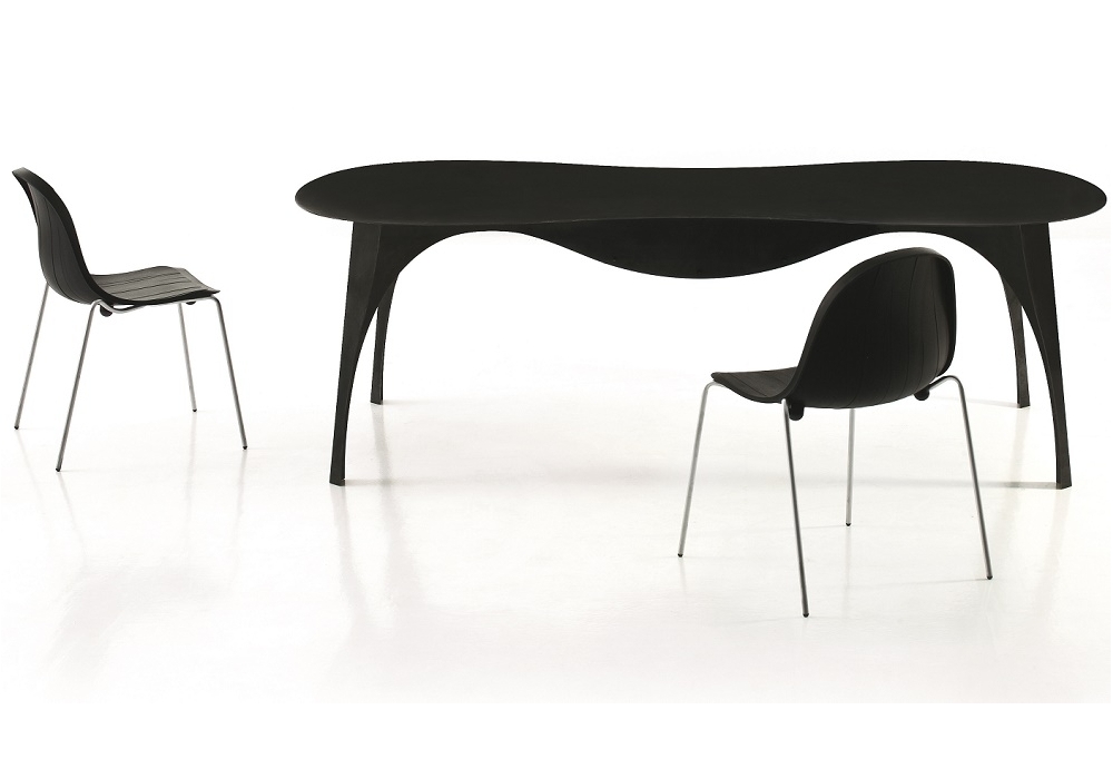 Impossible Wood diseñado por Nipa Doshi & Jonathan Levien para Moroso es un set de 2 sillas con carcasa de polipropileno y base en tubo pintado, cromado o de acero inoxidable Aisi 304 (apto para exteriores). Plantillas en polipropileno.