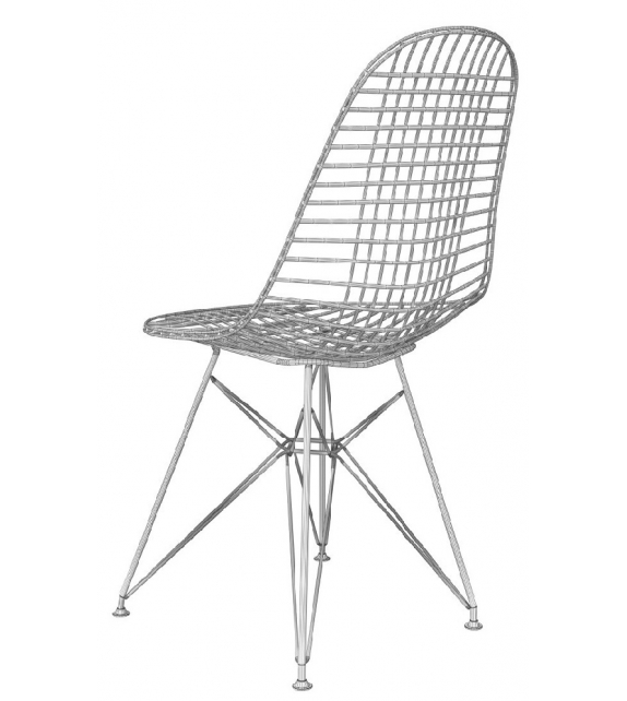 Vitra Wire Chair silla: Con la Wire Chair, los Eames varían el tema de la carcasa de asiento orgánica de una sola pieza, dándole una ligera transparencia y un alto grado de tecnicidad.
