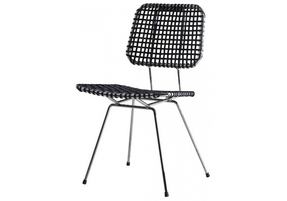 Brick 23 diseñada por Paola Navone para Gervasoni es una silla con estructura de acero cromado, asiento y respaldo tejido en pergamino gris.