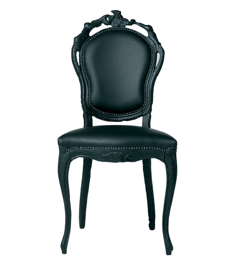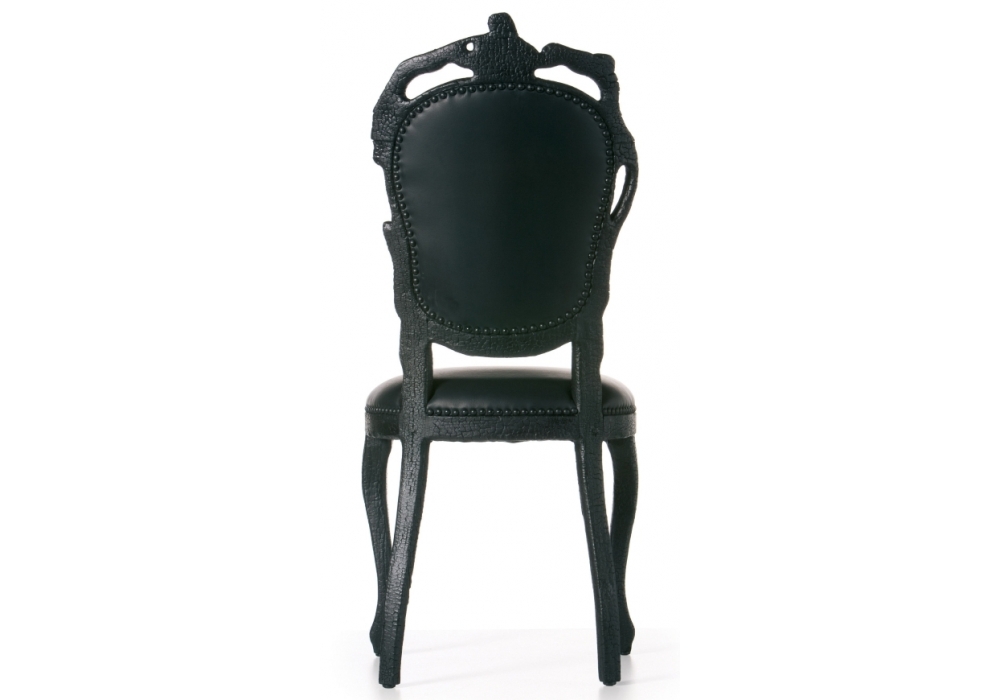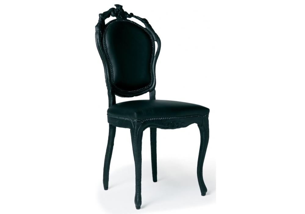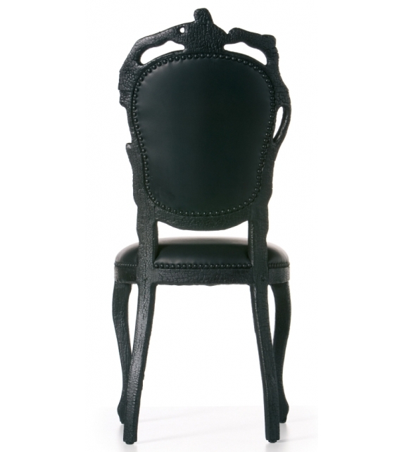 Smoke Dining Chair diseñada por Maarten Baas para Moooi es una silla realizada en tapizado de cuero y estructura en madera quemada acabada con resina epoxi.
