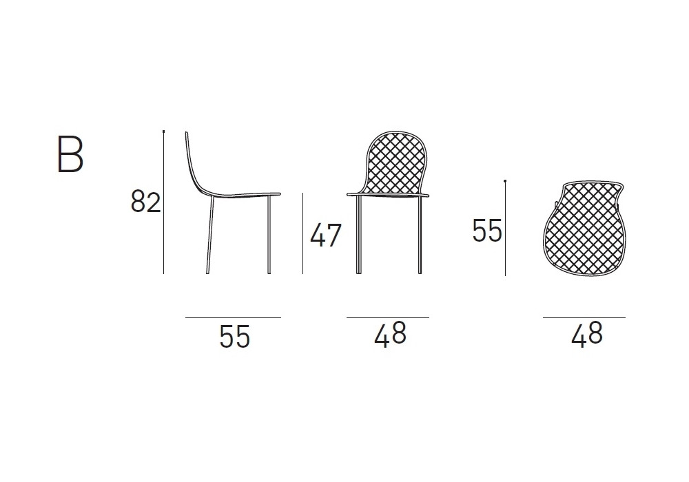 Family Chair designed by Junya Ishigami for Living Divani is a collection of 5 different chairs available for indoor and outdoor. Structure in 12mm steel rod, curved using a CNC machine and legs in 15mm steel rod welded together using internal reinforcement. Seat mesh is in 3mm steel wire with a 40x40mm diagonal weave, individually calandered for each seat. Finish with cataphoresis coating to allow outdoor use and epoxy powder coating in RAL-K7 9016 white.