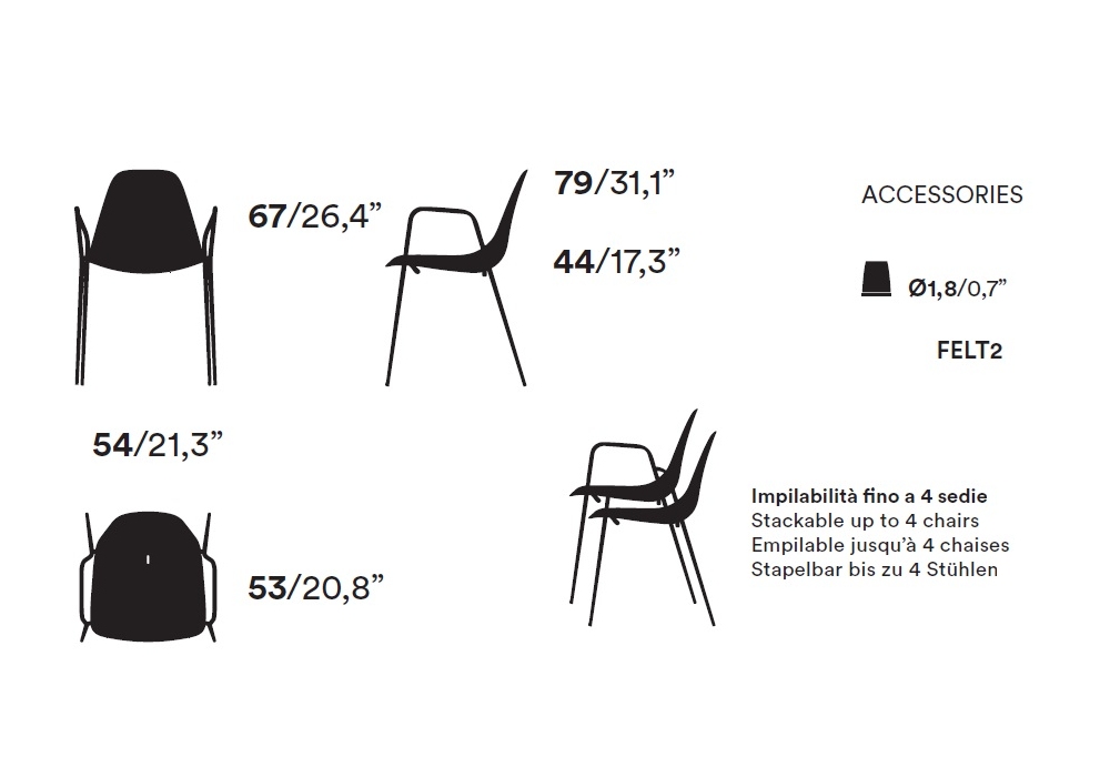 Mammamia diseñada por Marcello Ziliani para Opinion Ciatti es una silla apilable con apoyabrazos realizada con carcasa de aluminio inyectado y estructura de acero. Disponible en diferentes acabados.