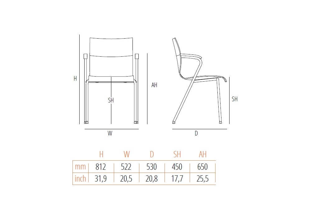 Hot diseñada por Gebrüder Thonet Vienna es una silla apilable con estructura de acero cromado. Asiento y respaldo tapizados con tapizado de tela o cuero. Disponible con o sin apoyabrazos.