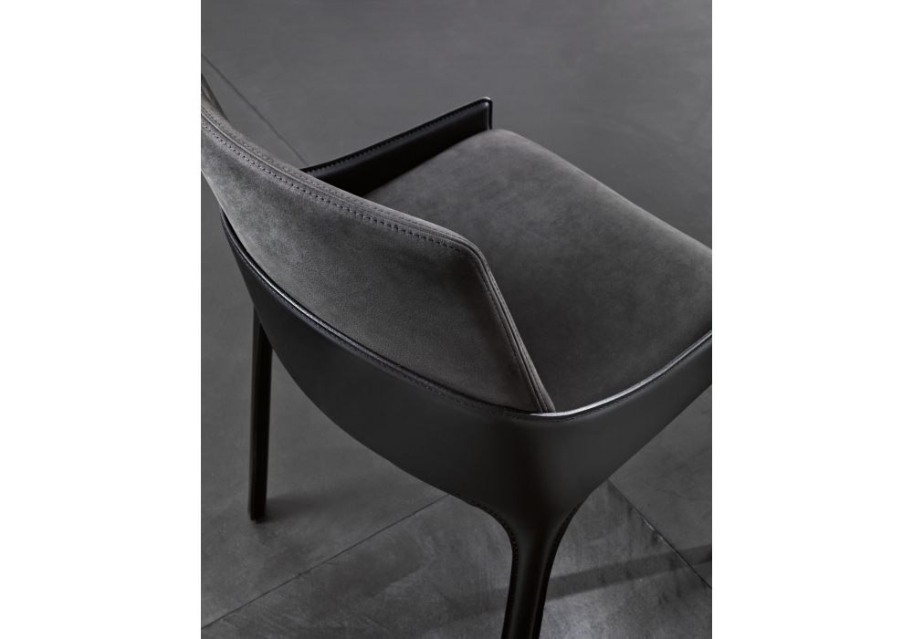 Pliè diseñada por Studio Klass para Fiam es una silla con estructura revestida en piel, asiento y respaldo tapizados disponibles en piel o nubuck. Estructura interna en tubo metálico y madera.