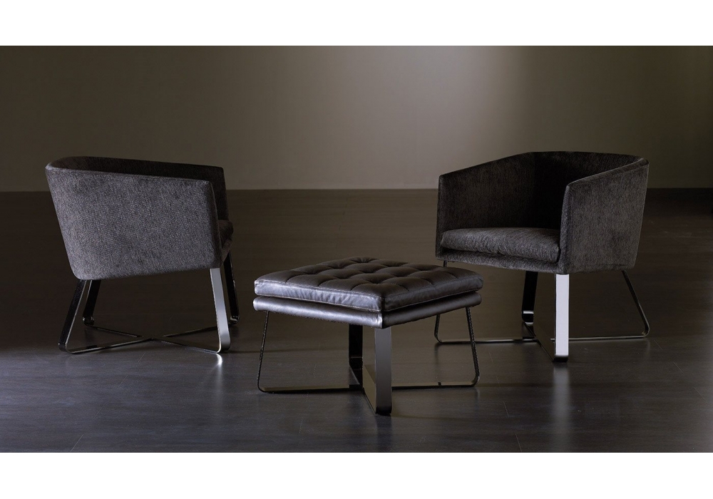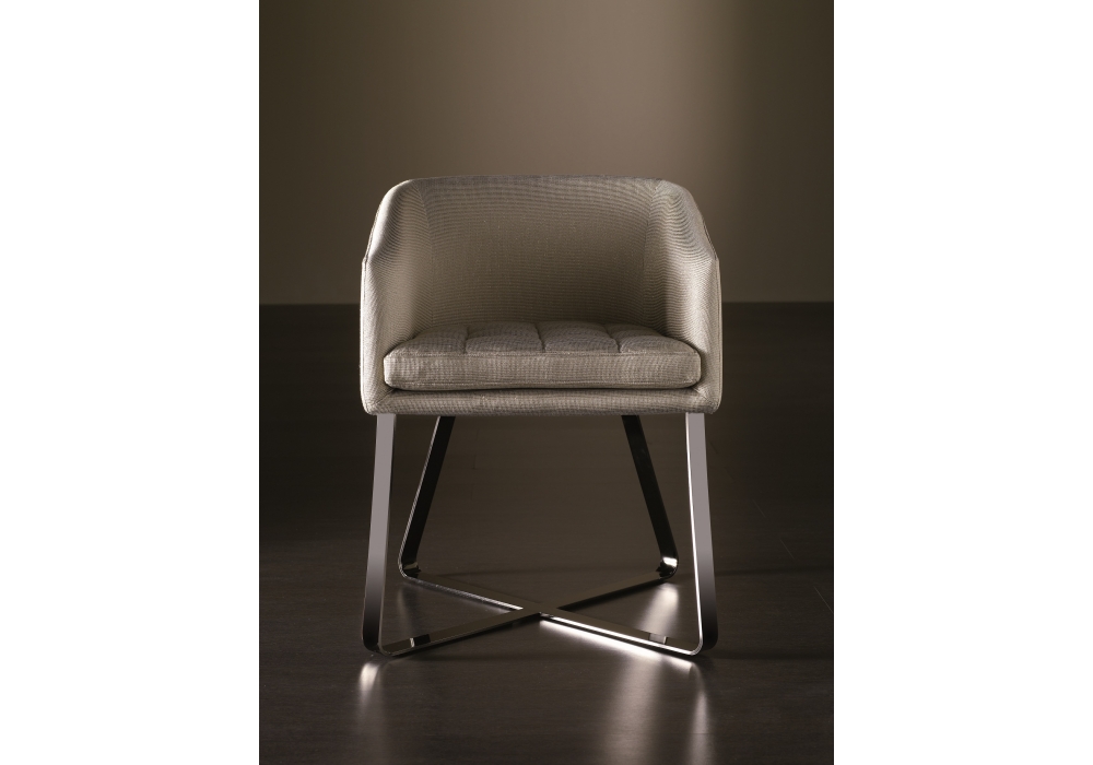 Lolyta designed by Andrea Parisio for Meridiani is a chair with base in metal with base in metal with glossy black nickel finish and seat cushion in polyurethane with fixed quilted cover. Upholstered shell with smooth external. Upholstery available in fabric or leather.