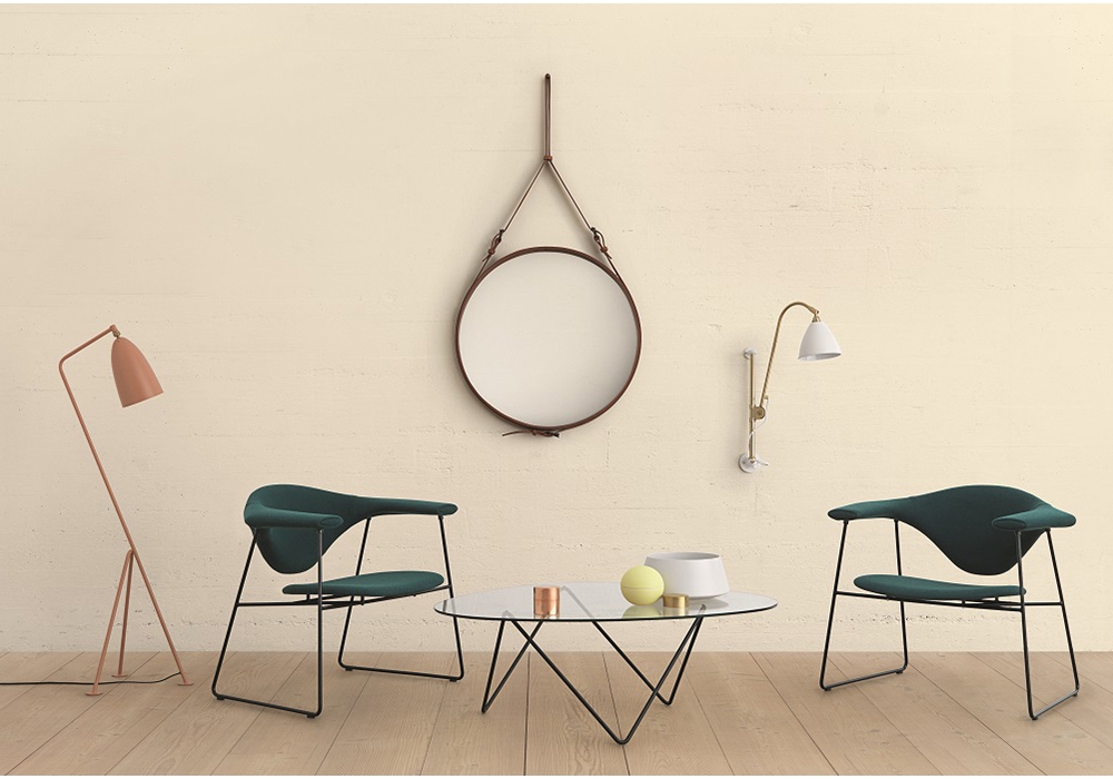 Masculo Lounge diseñada por GamFratesi para Gubi es una silla realizada con estructura de acero y revestimiento en tela o piel.