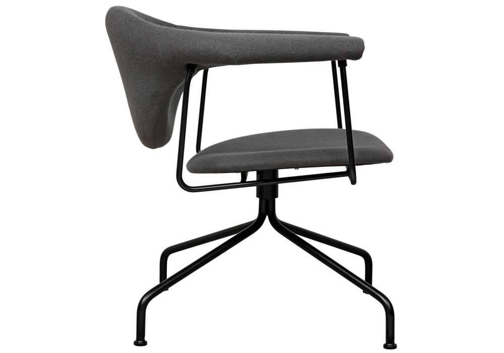 Masculo Lounge diseñada por GamFratesi para Gubi es una silla con base giratoria realizada con estructura de acero negro semi mate y revestimiento en tela o piel.