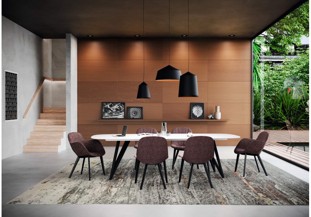 Sheru diseñada por Eoos para Walter Knoll es una silla con cuatro patas de madera en acabado roble o nogal. Revestimiento en tejido o piel. Disponible en varios modelos.