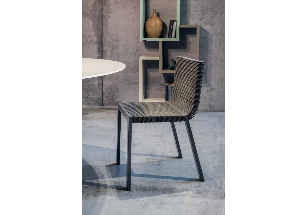 Steps diseñada por Monica Graffeo para Lago es una silla ecosostenible. Estructura de acero, asiento y respaldo de fieltro.