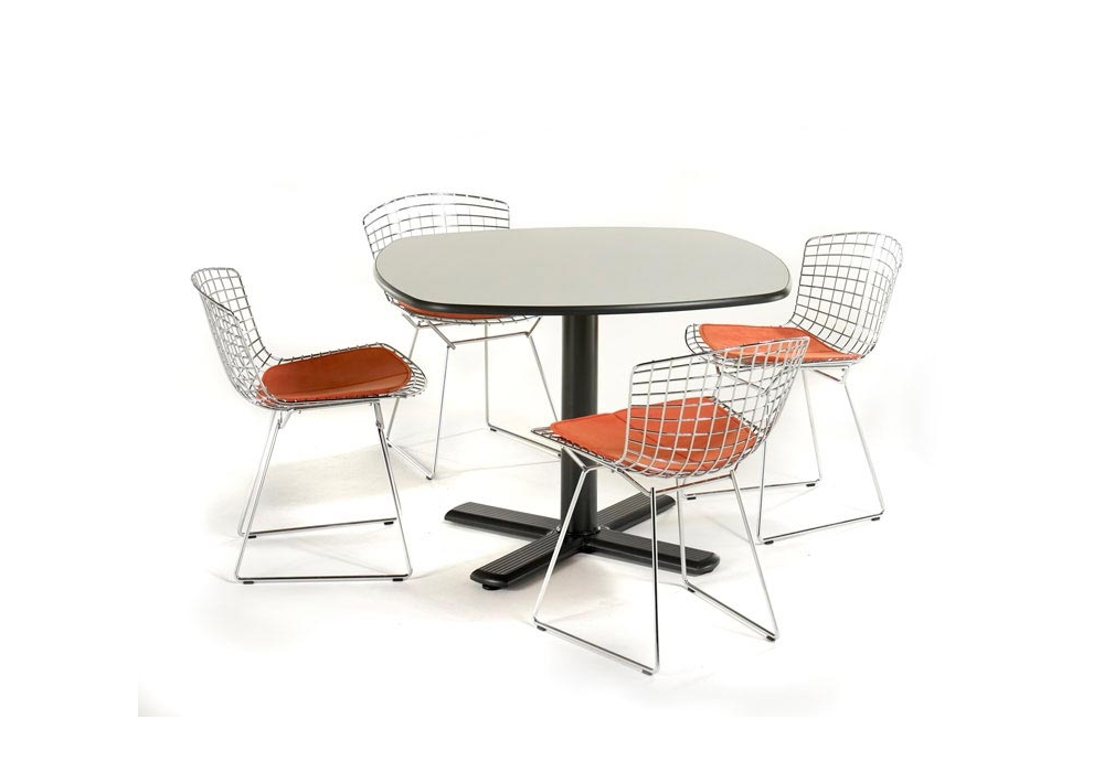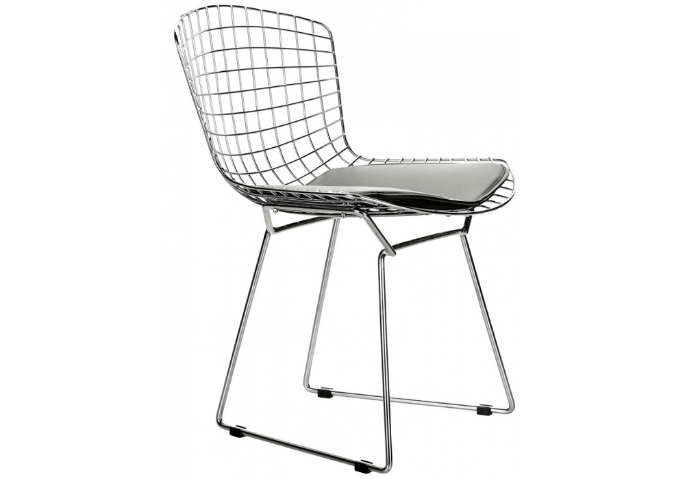 Bertoia diseñada por Harry Bertoia para Knoll es una silla fabricada con varilla de acero soldada en cada intersección. La carcasa está unida a la base con tornillos de acero inoxidable. El cojín del asiento (desmontable) se fija con correas provistas de broches. Disponible en varios acabados.