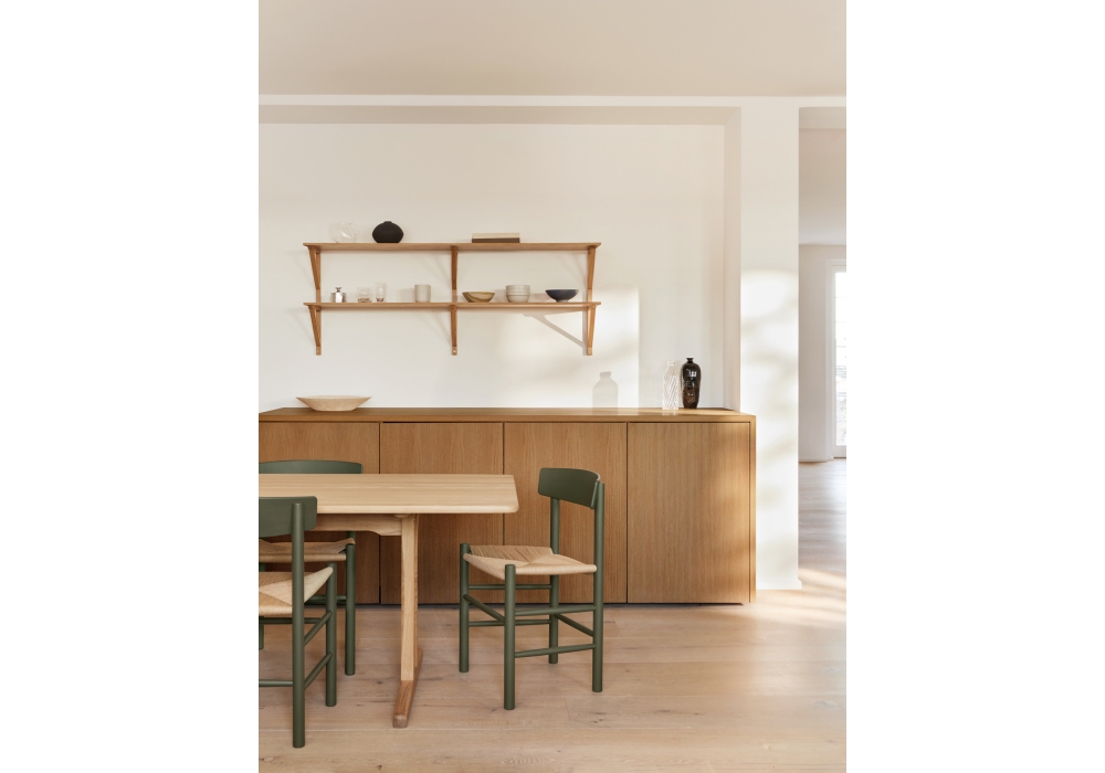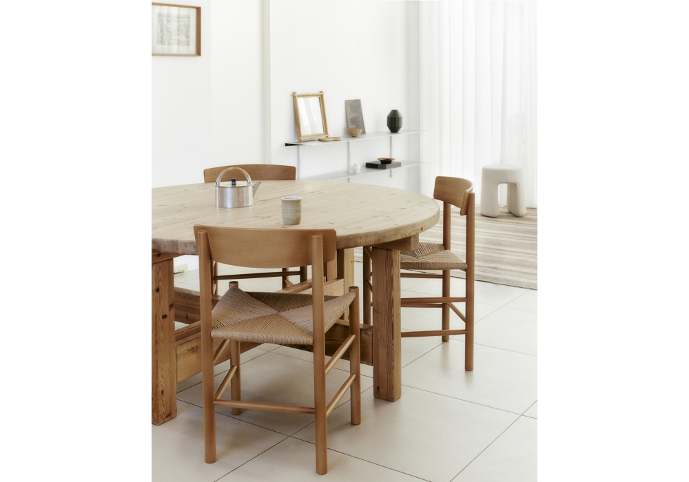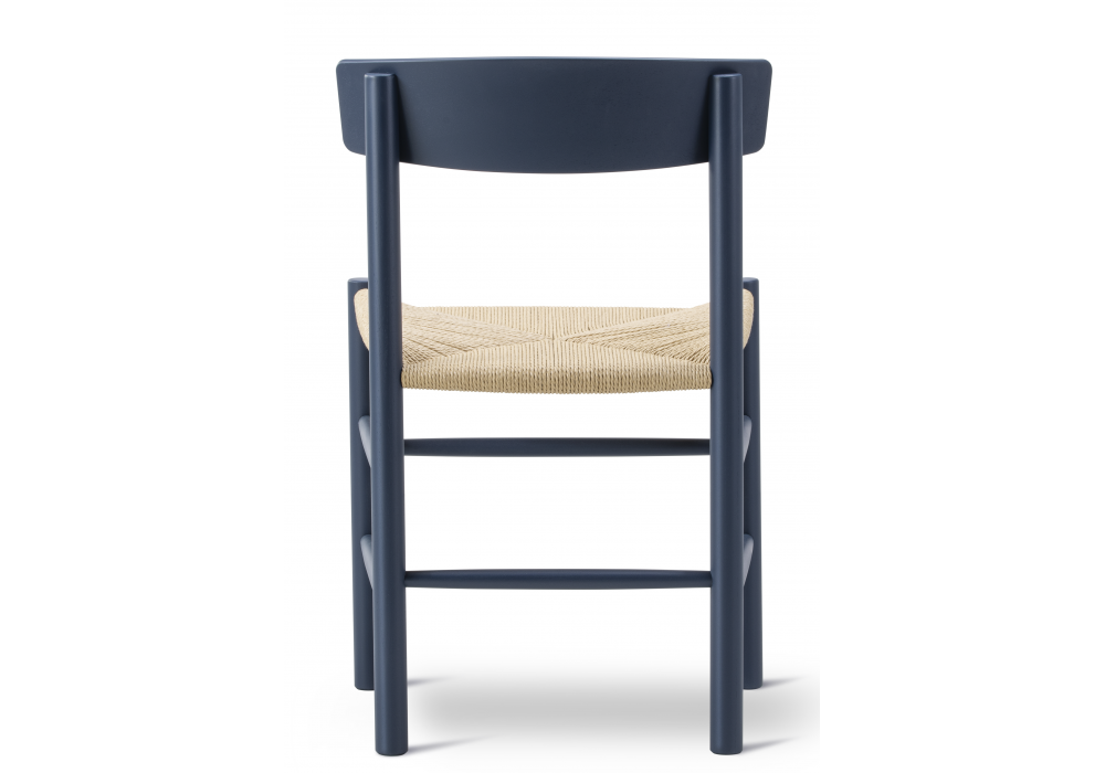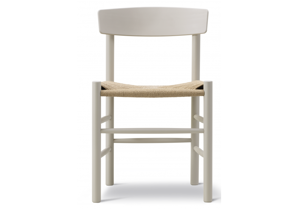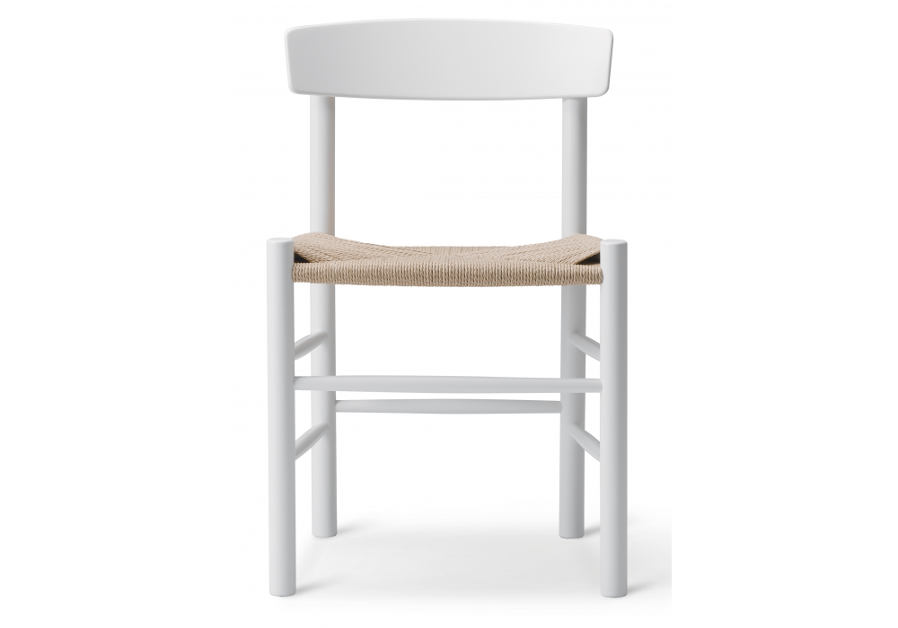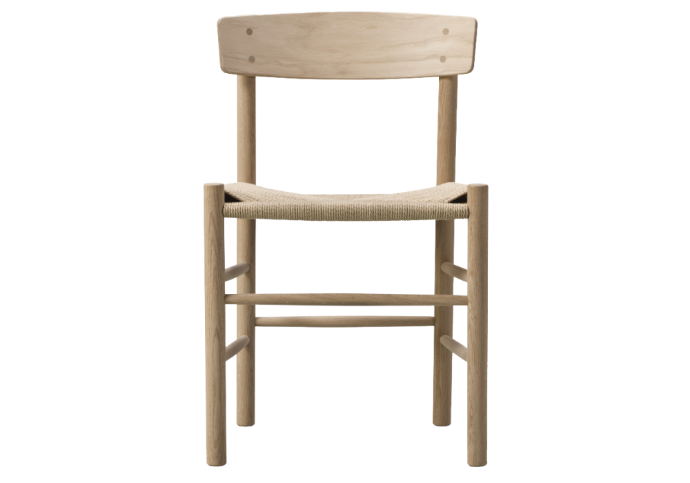 J39 Mogensen diseñada por Børge Mogensen para Fredericia es una silla realizada en haya maciza, roble o nogal. Asiento de cuerda de papel tejido en acabado natural o negro. Respaldo en madera curvada estratificada. Disponible en diferentes acabados.