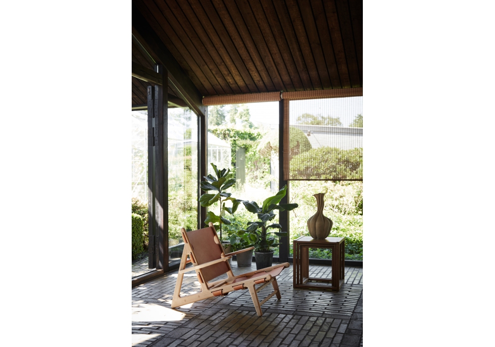 The Hunting diseñada por Børge Mogensen para Fredericia es una silla realizada con estructura de madera y con asiento y respaldo en cuero. El asiento es ajustable con hebillas de latón sólido, y la silla es fácil de moverse a diferentes lugares de la casa. Disponible en diferentes acabados.