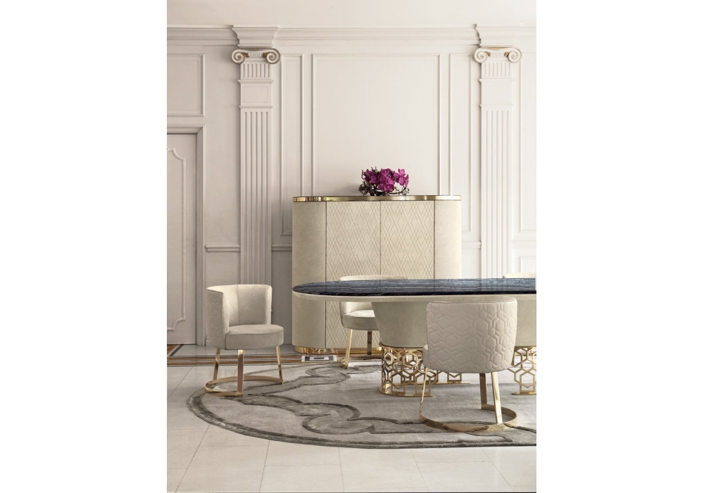 Cloé diseñada por Giuseppe Iasparra para Longhi es una silla con base giratoria autocentrante en metal brillante o mate y respaldo con o sin acolchado en tejido fijo, terciopelo o piel. Disponible en diferentes acabados y versiones.