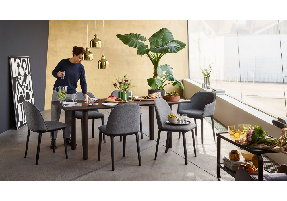 Softshell Side Chair diseñada por Ronan & Erwan Bouroullec para Vitra es una silla con respaldo y asiento en poliamida reforzada con fibra de vidrio. Acolchado del asiento y del respaldo en espuma de poliuretano. Base de poliamida en color chocolate o basic dark con deslizadores. Available in different finshes.
