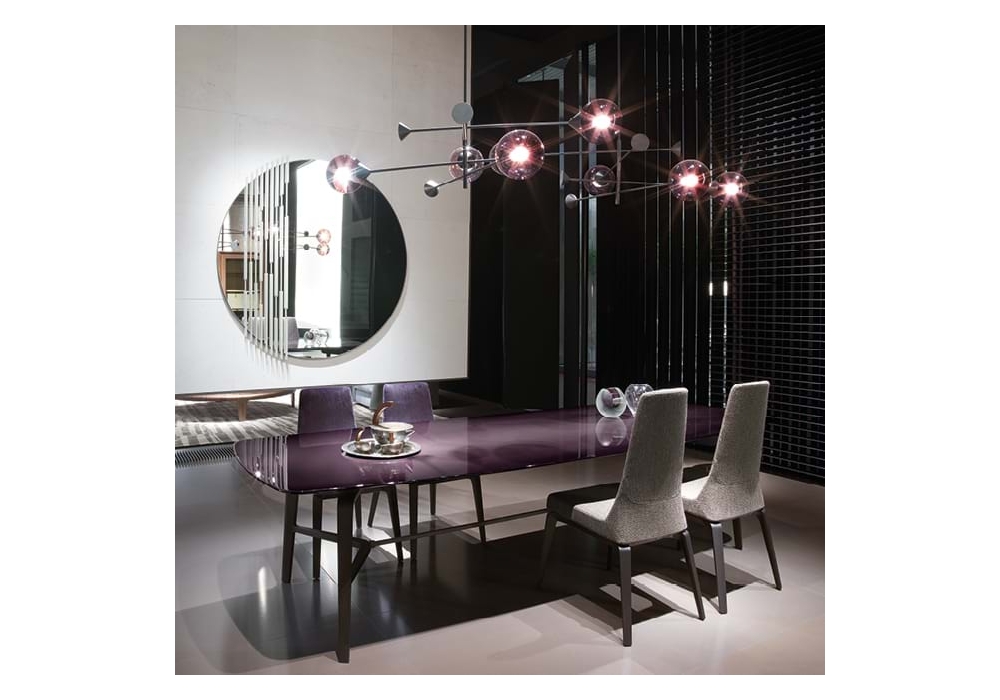Ala diseñada por Umberto Asnago para Giorgetti es una silla con respaldo alto o bajo, con la base en madera maciza de fresno disponible en cuatro acabados. Asiento y respaldo tienen estructura de Polimex y el acolchado es de espuma de poliuretano, recubierto de fibra. La tapicería, en tela o piel, es completamente desenfundable y tiene una inserción de piel a lo largo del perfil.