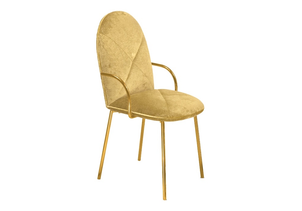 Orion Chair diseñada por Nika Zupanc para Scarlet Splendor es una silla realizada con una estructura de metal en color oro u oro rosa. Asiento de espuma tapizado en diferentes tejidos.