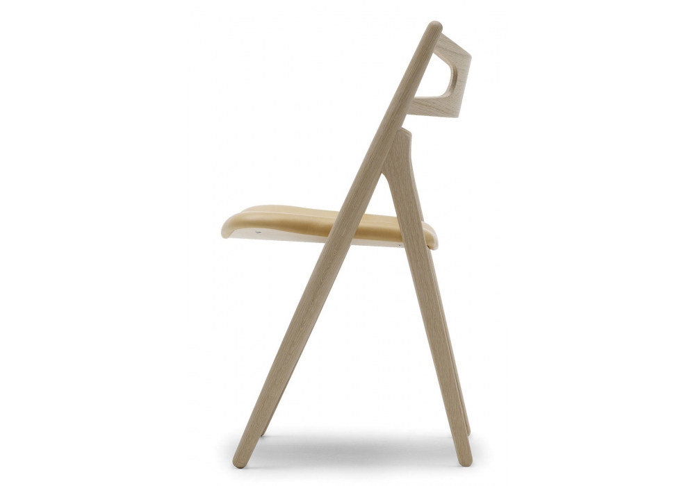 CH29P diseñada por Hans J. Wegner para Carl Hansen & Søn es una silla con estructura de madera maciza disponible en diferentes acabados. Asiento de espuma fría retardante de llama CMHR y tapizado de tela o cuero.