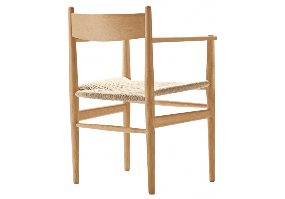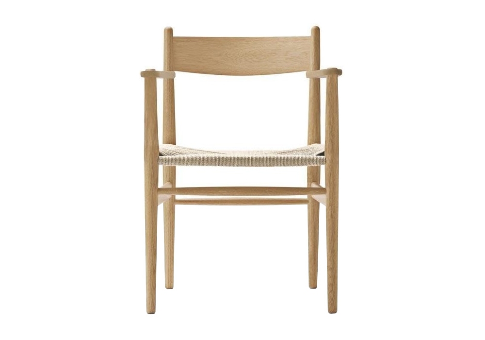 CH37 diseñada por Hans J. Wegner para Carl Hansen & Søn es una silla con reposabrazos realizada con estructura en haya maciza o roble en diferentes acabados. Asiento en paja natural o negra.