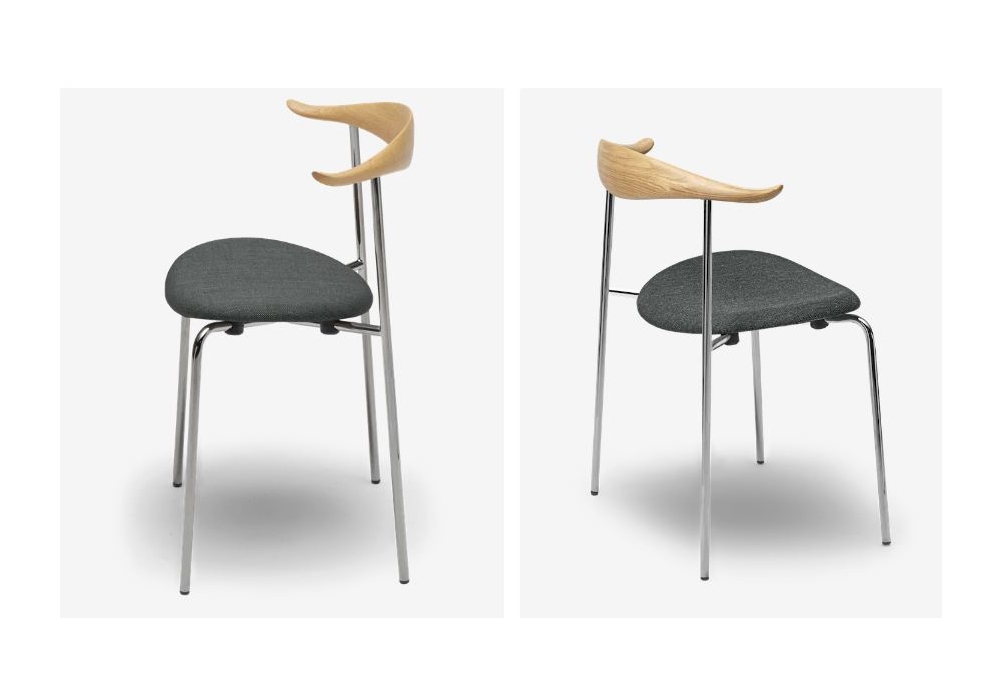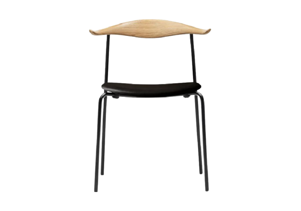 CH88P diseñada por Hans J. Wegner para Carl Hansen & Søn es una silla sin brazos fabricada con estructura de acero inoxidable o pintada en polvo negro. Respaldo en madera de haya o roble en diferentes acabados. Asiento acolchado con tapizado de tela o piel.