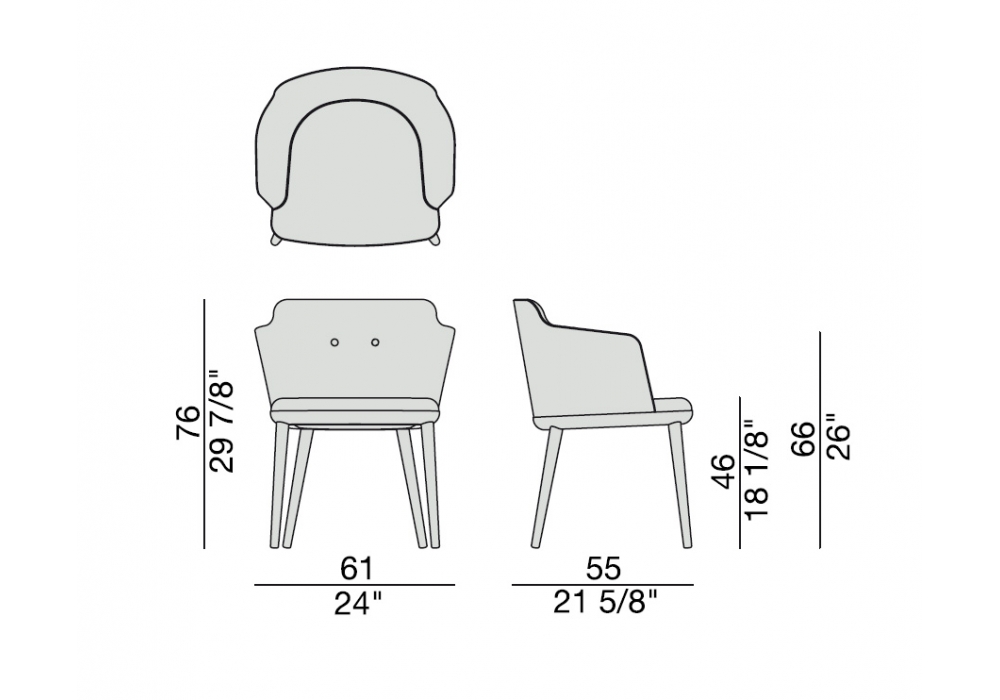 Celine diseñada por Carlo Ballabio para Porada es una silla con reposabrazos con estructura en nogal canaletta o fresno macizo disponible en diferentes acabados. Revestimiento en tela o piel.