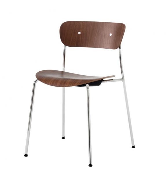 Pavilion diseñada por Anderssen & Voll para &Tradition es una silla con o sin reposabrazos, realizada con tubos de acero curvados y chapada a presión. Respaldo de chapa acabada en lacado PU y asiento acolchado con tapizado de tela o piel. Disponible en diferentes acabados.