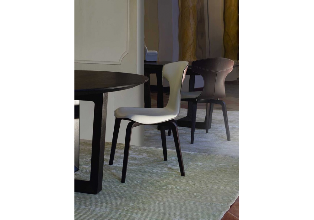 Montera diseñada por Roberto Lazzeroni para Poltrona Frau es una silla de comedor con carcasa de poliuretano rígido moldeado, relleno de espuma de poliuretano y tapicería de piel Pelle Frau®. Disponible en dos versiones: carcasa de cuero con revestimiento interior de piel o totalmente de piel, monocolor o bicolor. La piel y el cuero con bordes limpios están cosidos con hilo de contraste. La versión totalmente de cuero presenta costuras tono sobre tono. Patas de madera maciza de fresno o acero.