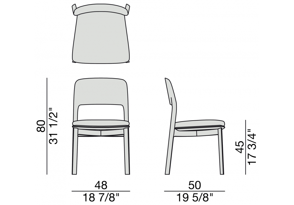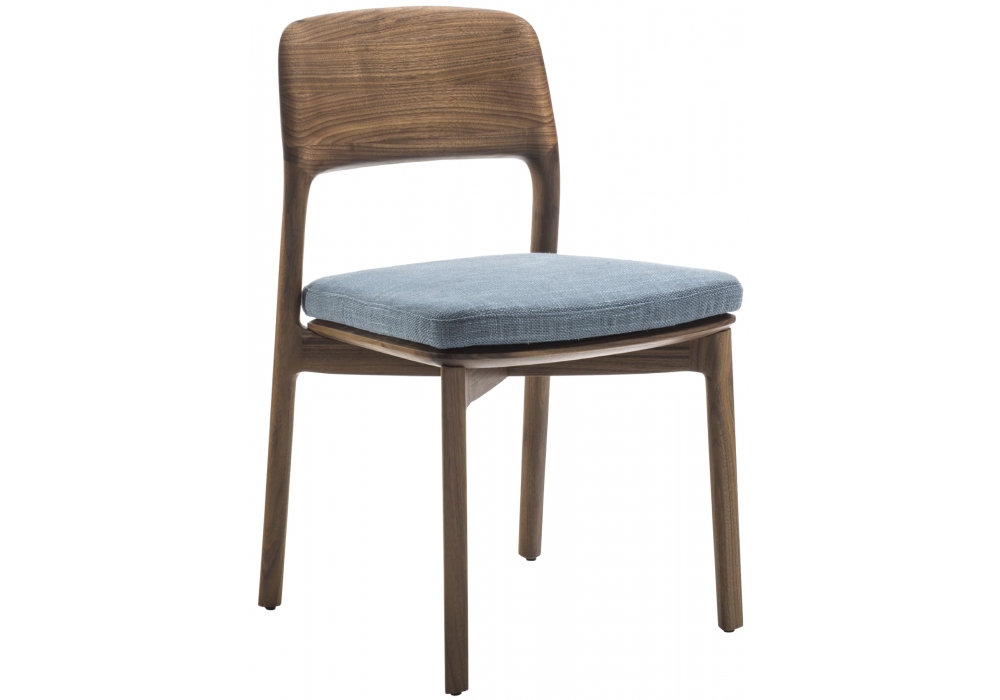 Emma diseñada por Patrick Jouin para Porada es una silla en nogal canaletto con asiento tapizado en tejido o piel.