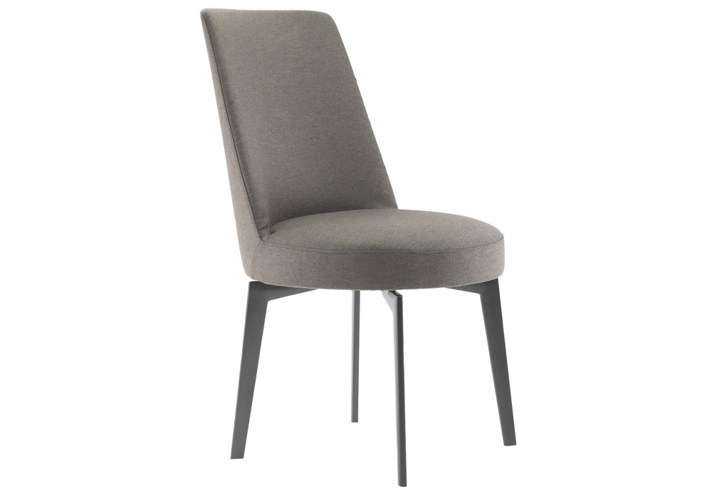 Hera diseñada por Antonio Citterio para Flexform es una silla con patas en metal y revestimiento en diferentes acabados de tela y cuero. Disponible en dos medidas.