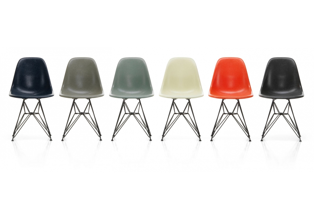 Eames Fiberglass Chair DSR diseñada por Charles & Ray Eames para Vitra es una silla con carcasa en poliéster reforzado con fibra de vidrio disponible en diferentes acabados. Base en acero.
