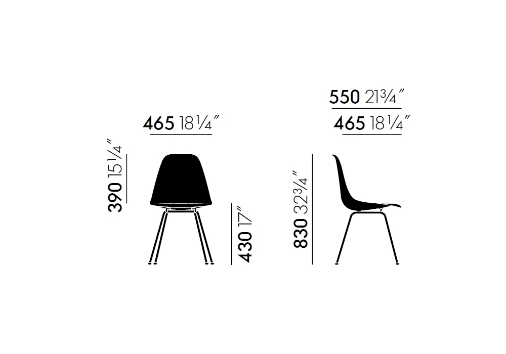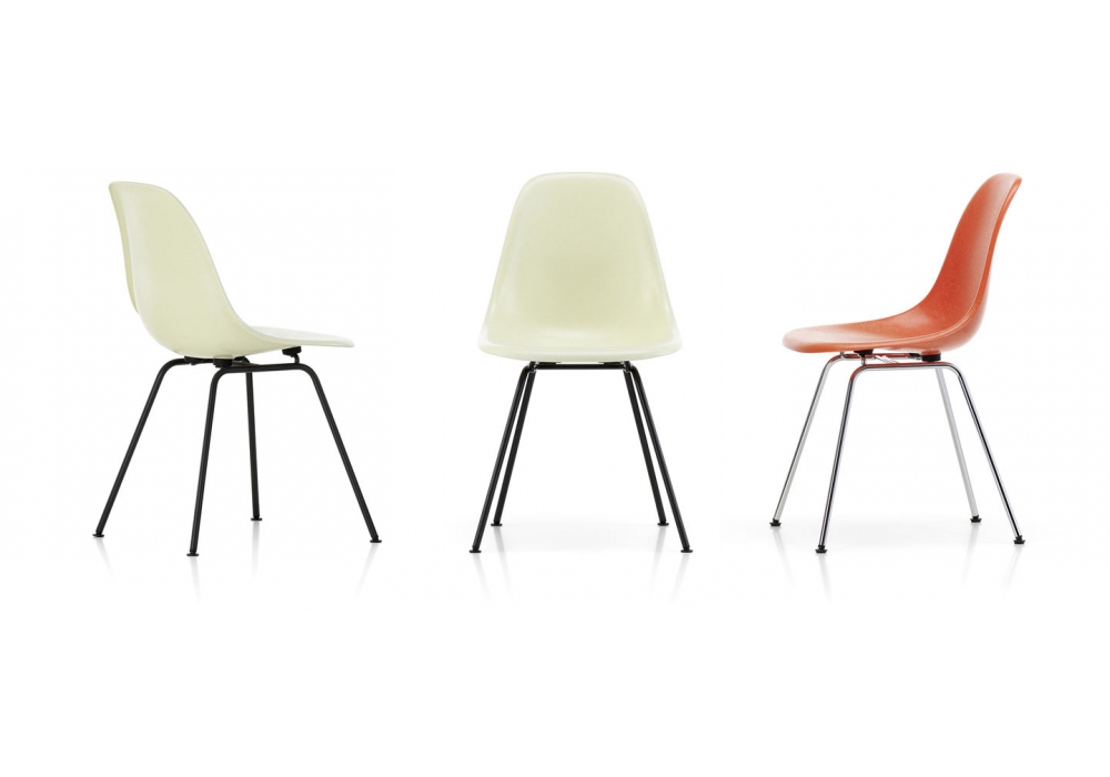 Eames Fiberglass Chair DSX diseñada por Charles & Ray Eames para Vitra es una silla con carcasa en poliéster reforzado con fibra de vidrio disponible en diferentes acabados. Patas en metal.