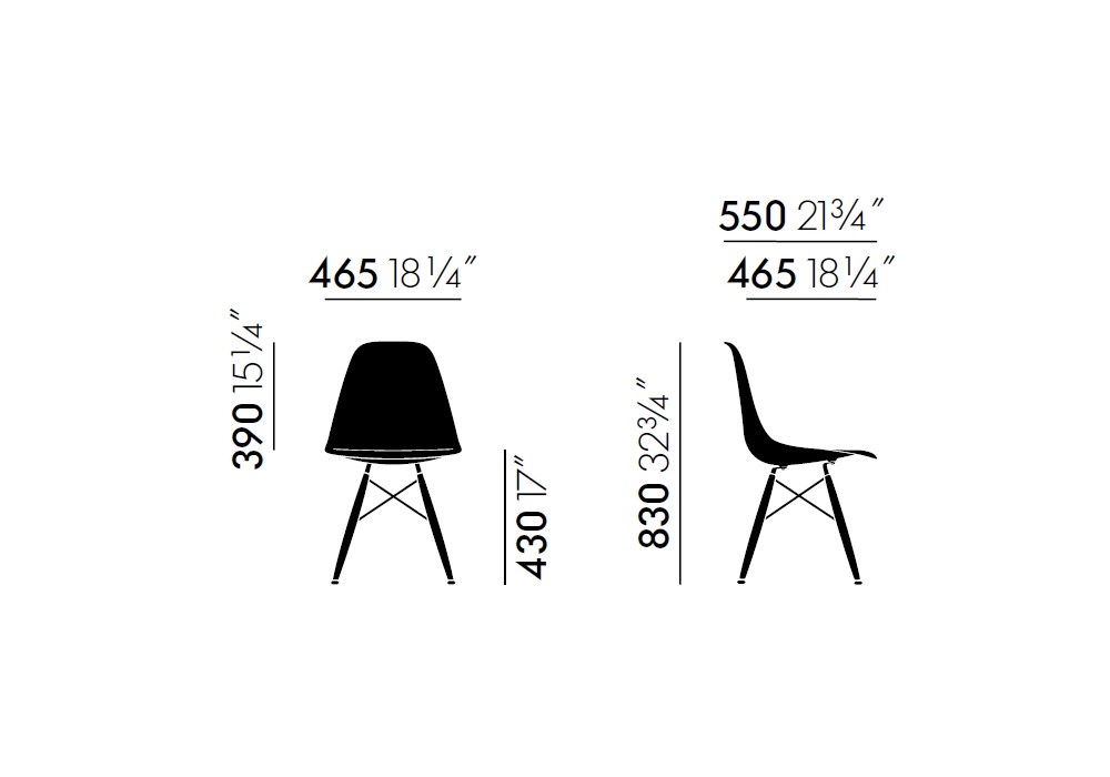 Eames Fiberglass Chair DSW diseñada por Charles & Ray Eames para Vitra es una silla con carcasa en poliéster reforzado con fibra de vidrio disponible en diferentes acabados. Base en madera con alambres de metal.