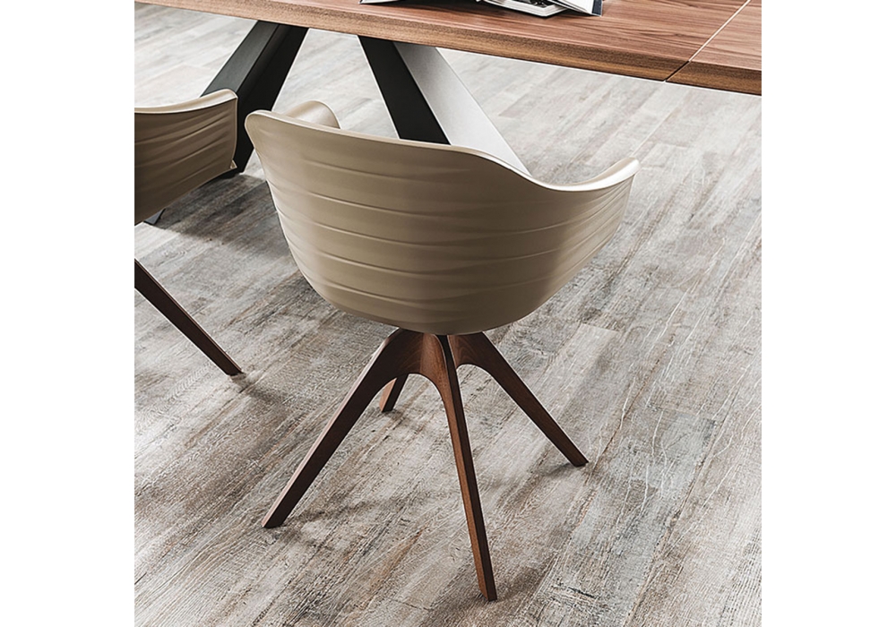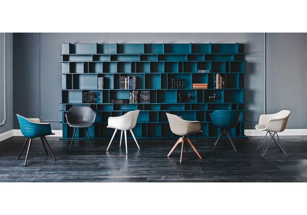 Indy diseñada por Archirivolto para Cattelan Italia es una silla con base en acero, asiento y respaldo en poliuretano. Disponible en versión fija o giratoria.