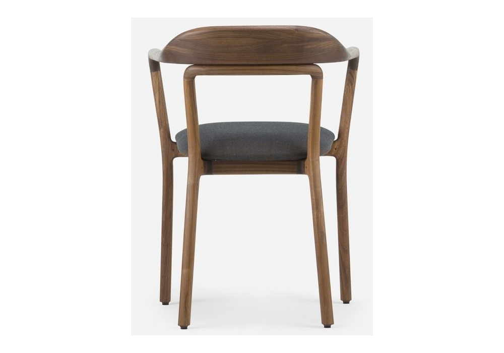 Duet diseñada por Neri & Hu para De La Espada es una silla de comedor con asiento acolchado y tapizado en tejido o piel y estructura en madera disponible en diferentes acabados.