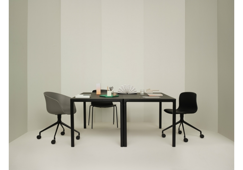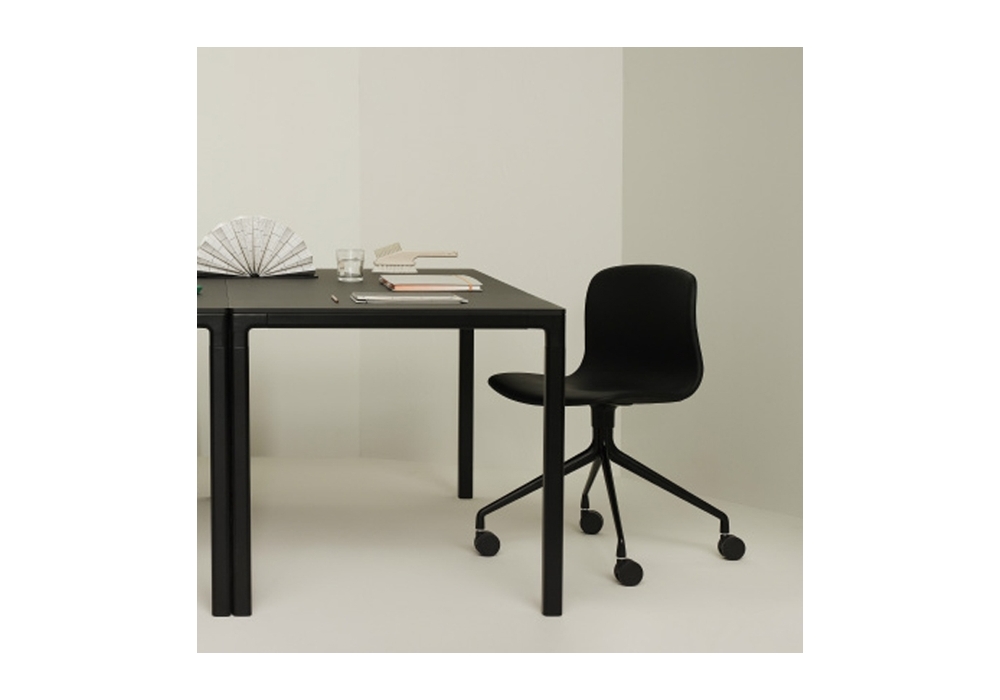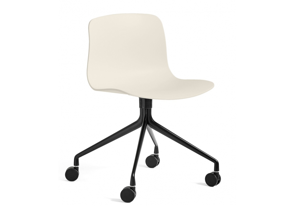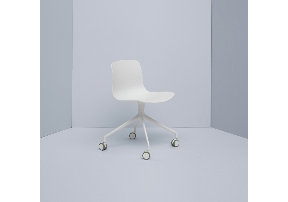 About a Chair AAC 14 diseñada por Hee Welling & Hay para Hay es una silla con carcasa de polipropileno inyectado de color sin reposabrazos, tapizado frontal de espuma, base giratoria de 4 radios en fundición de aluminio pintado en polvo con ruedas. Disponible en diferentes acabados.